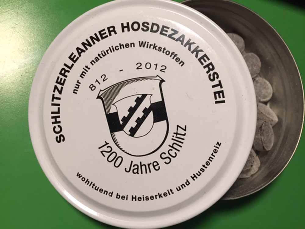 Was Sie hier sehen, sind „Schlitzerleanner Hosdezakkerstei“ (geschrieben in etwa so, wie man “Schlitzerländer Hustenzuckersteine” in Schlitzer Mundart ausspricht). In der Sonnen-Apotheke von Christian Gerninghaus gibt es die Schlitzer Wohltat bei Hustenreiz und Heiserkeit – nur mit natürlichen Wirkstoffen. Die Apotheke ist zentral gelegen und barrierefrei.